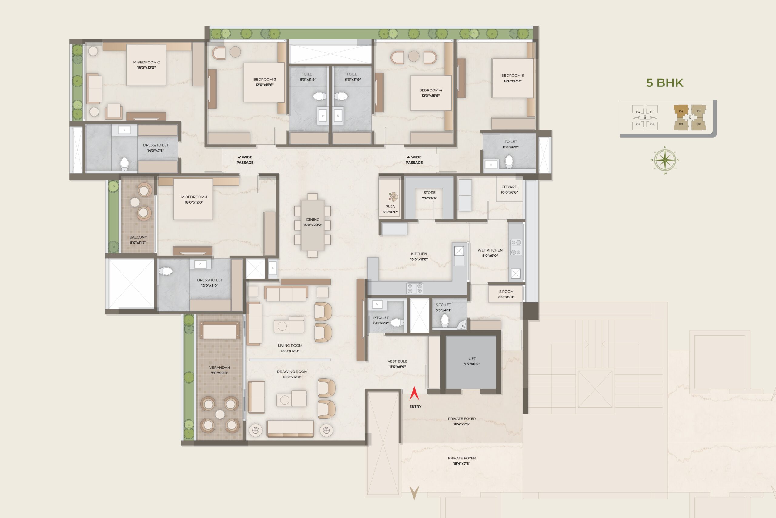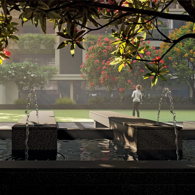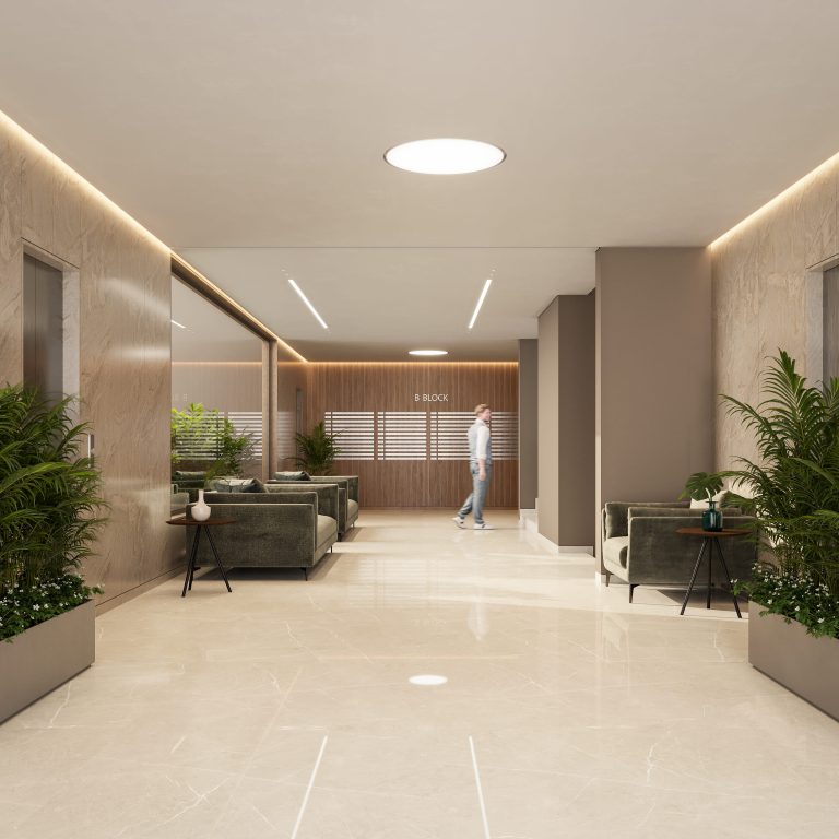 Interiors at Pratibimb are a blend of luxury and thoughtful design — featuring all master bedrooms, private foyers with Mitsubishi elevators, and vastu-compliant layouts. Every unit is crafted with refined detailing to create a serene and exclusive living experience, reflecting elegance in every corner.