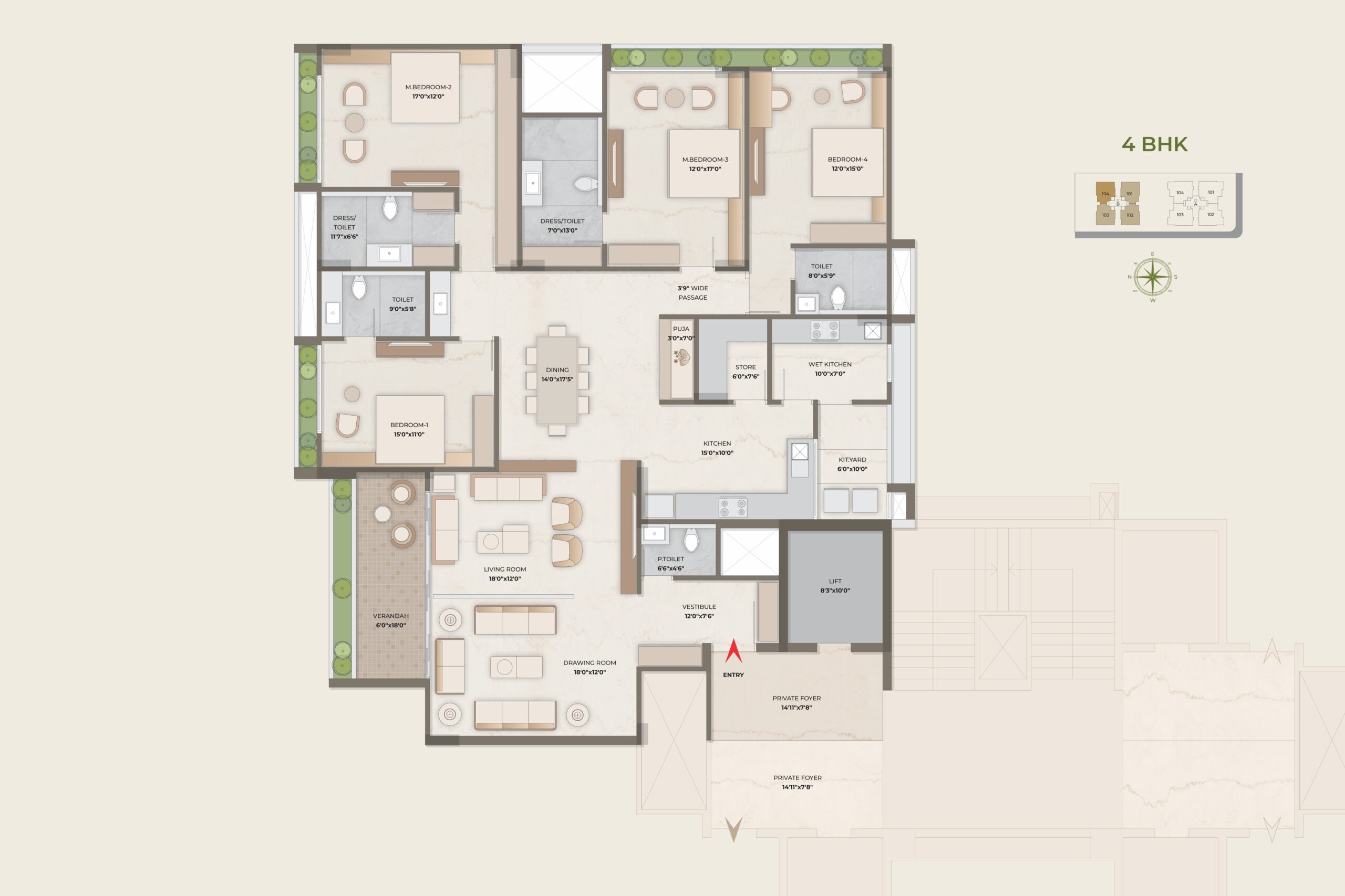 Live peacefully with top-tier security and thoughtfully planned privacy in dining, kitchen, and bedroom layouts.