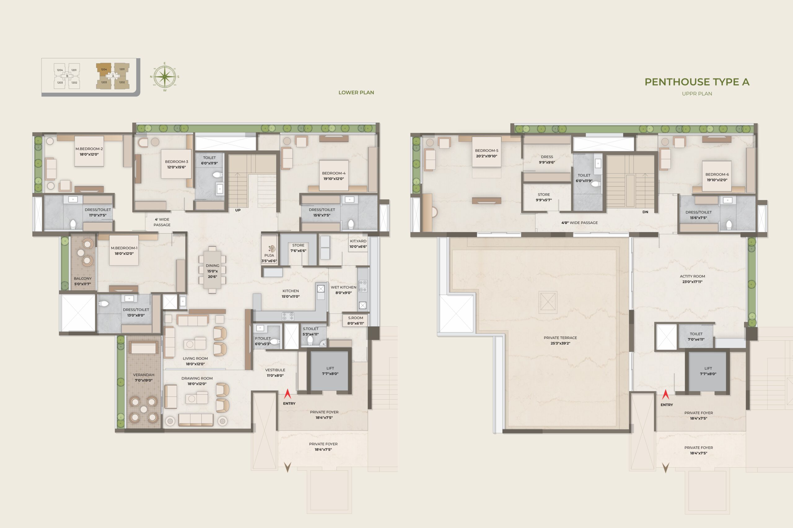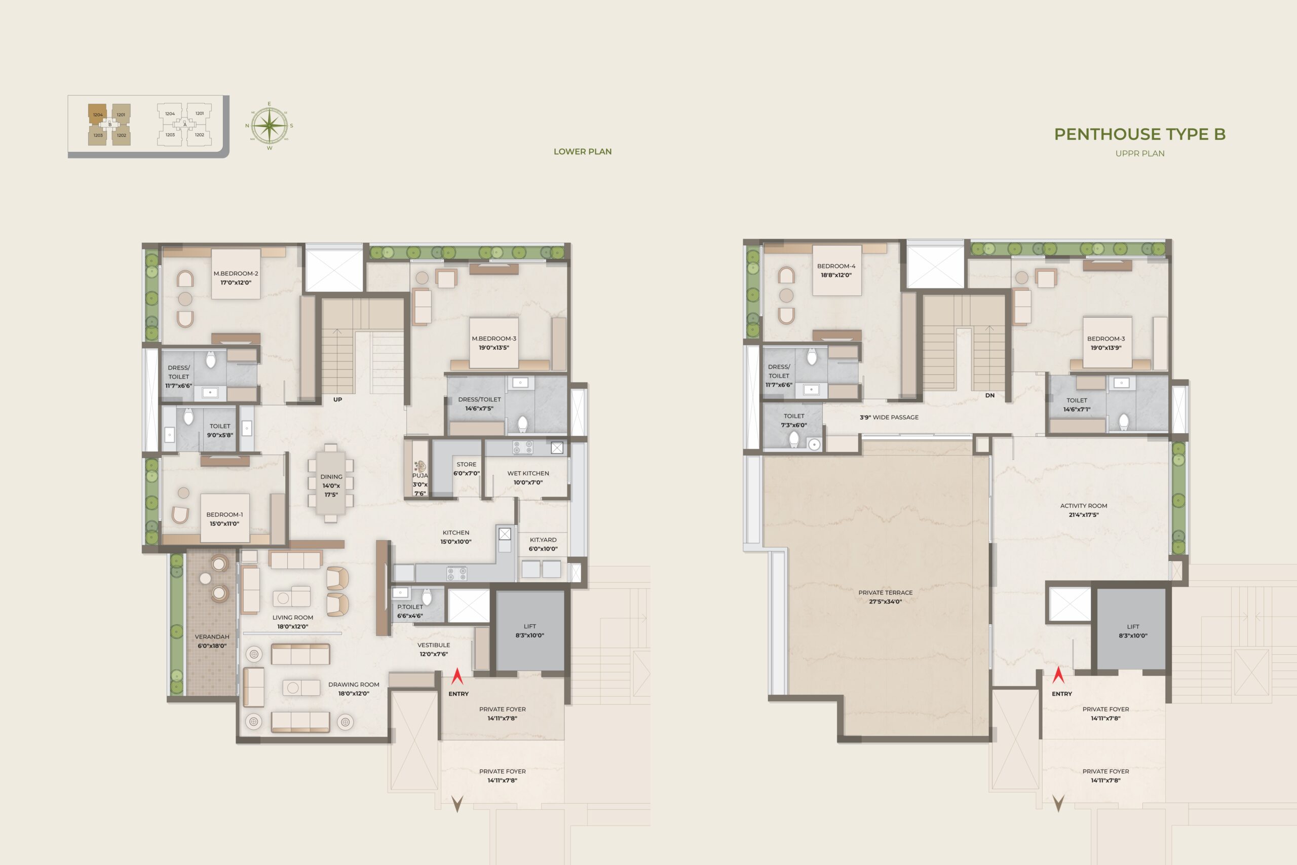 Enjoy the exclusivity of private foyers and elevators for each unit, offering unmatched privacy and a grand welcome home.