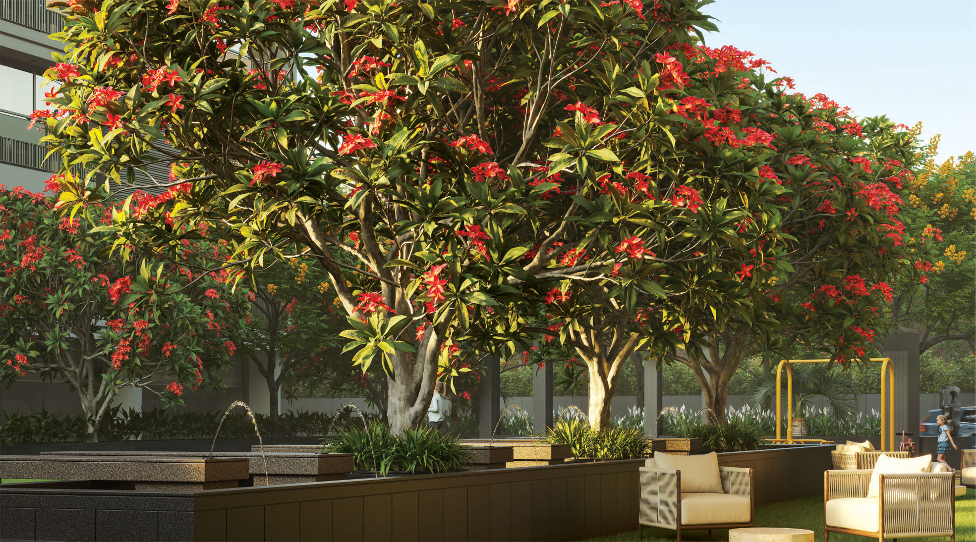 Spread across 14,000 sq. ft., lush gardens bring nature to your doorstep—relax, breathe, and unwind in your own green haven.